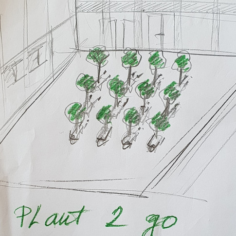 Im Rahmen dieser Ausstellung war auch der Aufbau unserer mit viel Aufwand verbundenen temporären Kunst-Installation der 8AB „PLANT 2 GO“ am 20.04.2020 geplant. Dafür war bereits alles organisiert: Bäume, Erde (und Lieferung) und Schubkarren (organisiert von den Schülerinnen der 8AB).