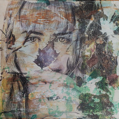 BAUMPATEN 8AB– Leinwände-Inspiration durch die Natur, kombiniert mit Selbstportrait, Acryl und Fotodrucktechnik auf Leinwand 50 cm x 40 cm bzw. 50 cm x 60 cm und Grafiken- Linolschnitt/Collage.