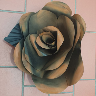 Überdimensionale schwarze Rosen in Origami-Technik, präsentiert am Tag der offenen Tür in Form einer Installation über drei Stockwerke in der Aula des BG Tanzenberg.