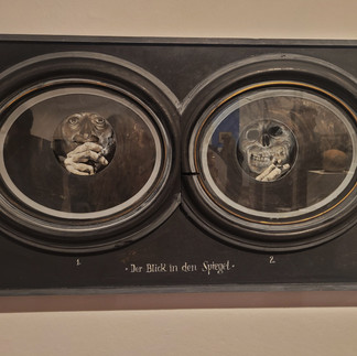 Im letzten Raum wurde das große Tabuthema - der Tod - als finales Geheimnis thematisiert. Hier konnten die Ausstellungsbesucher:innen die Totenmasken von Herzogin Sophie von Hohenberg, der Frau von Erzherzog Franz Ferdinand, und des jung und tragisch verstorbenen Egon Schiele sehen.