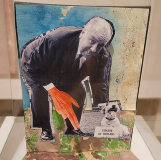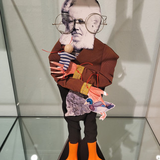 Neben Kunstwerken von Alfred Kubin konnten die Schüler:innen auch jene zeitgenössischer Künstler:innen aus Kärnten bewundern: Die Serie von sechs Bildern zur Thematik "Es spukt“ von Caroline Hudelist, kombiniert mit lyrischen Komponenten und feinen Zeichnungen, die in einem sterilen Raum als Hintergrund abgebildet waren (eine Hommage an Francis Bacon) sowie die poetischen, fantasievollen und humorvollen Collagen aus der Serie "Das Große Welttheater" (eine Serie von 300 Collagen mit Figuren, Künstler:innen und Wissenschaftler:innen aus den Jahren 2018-2022) von Burgis Paier (Puppenmacherin, Kostüm- und Bühnenbildnerin).
