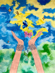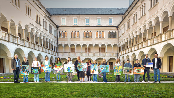 Im Beisein des Schulleiters, Herrn Direktor Horn, sowie der Kunstprofessor:innen, Frau Prof. Brunner und Frau Prof. Shaqiri-Petritz, wurde der erste Preis unter dem Motto „Frieden ohne Grenzen“ an Antonia Schöffmann (2B) verliehen.