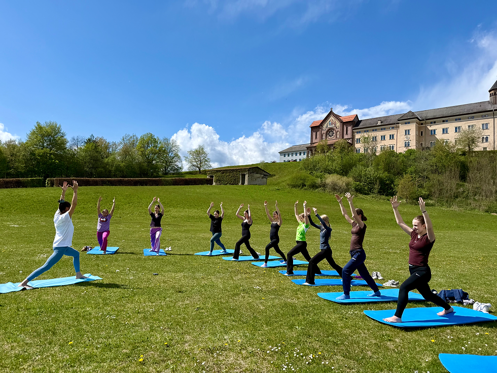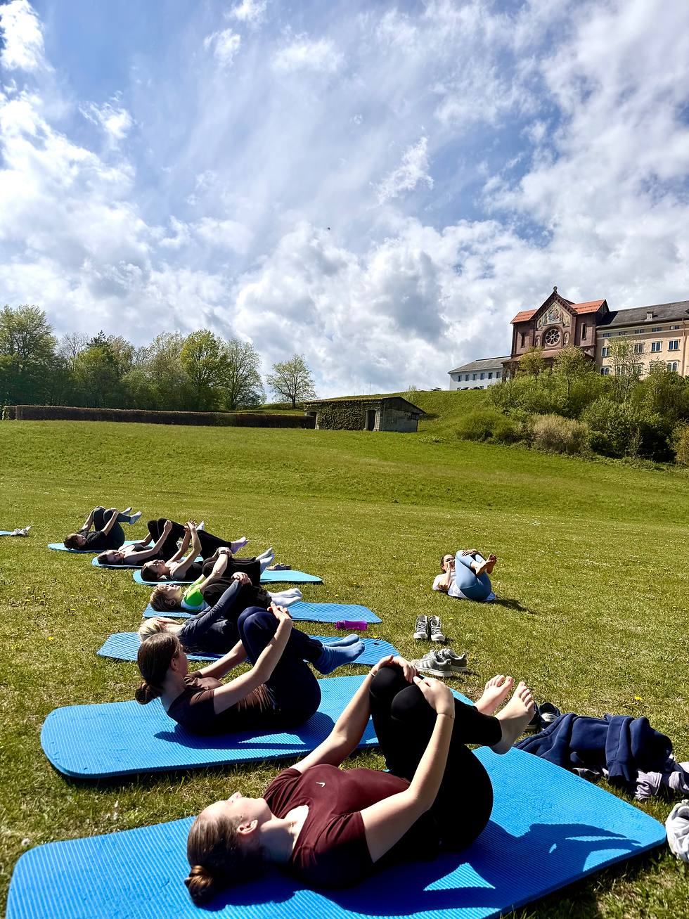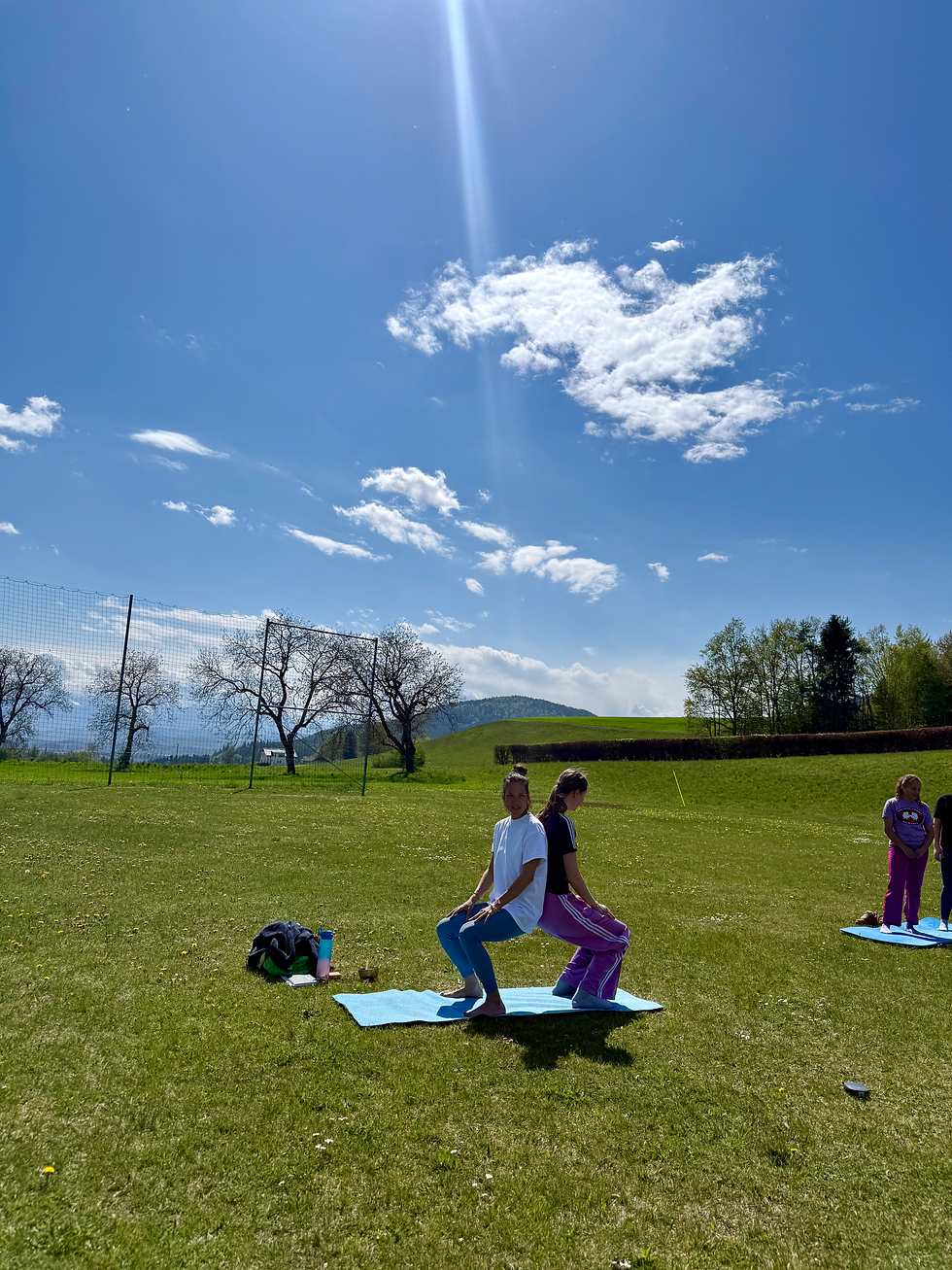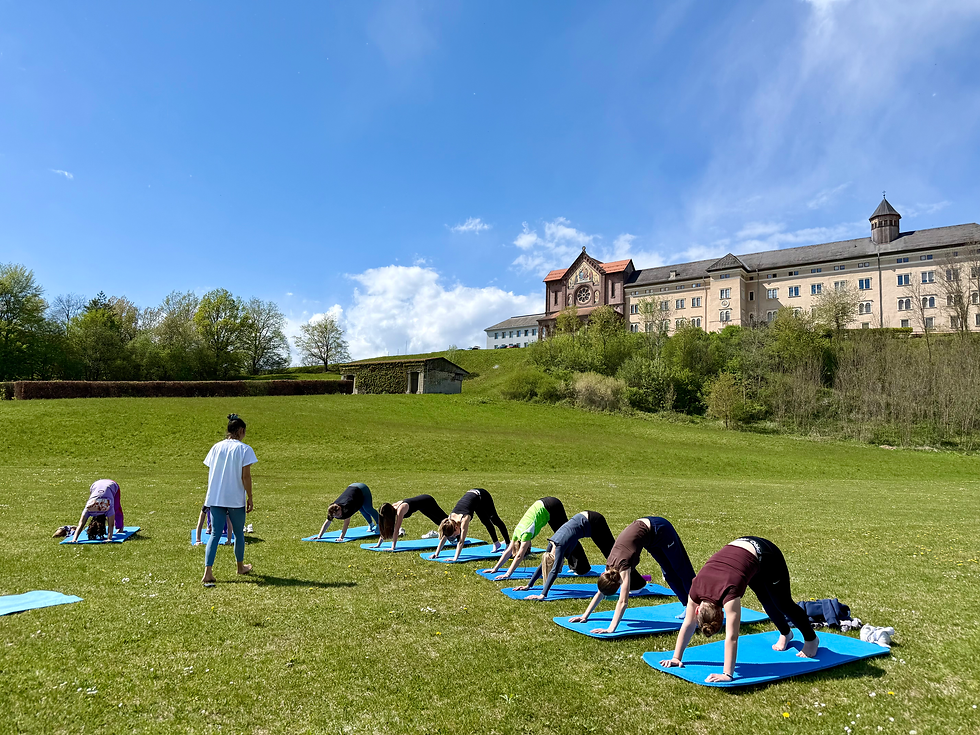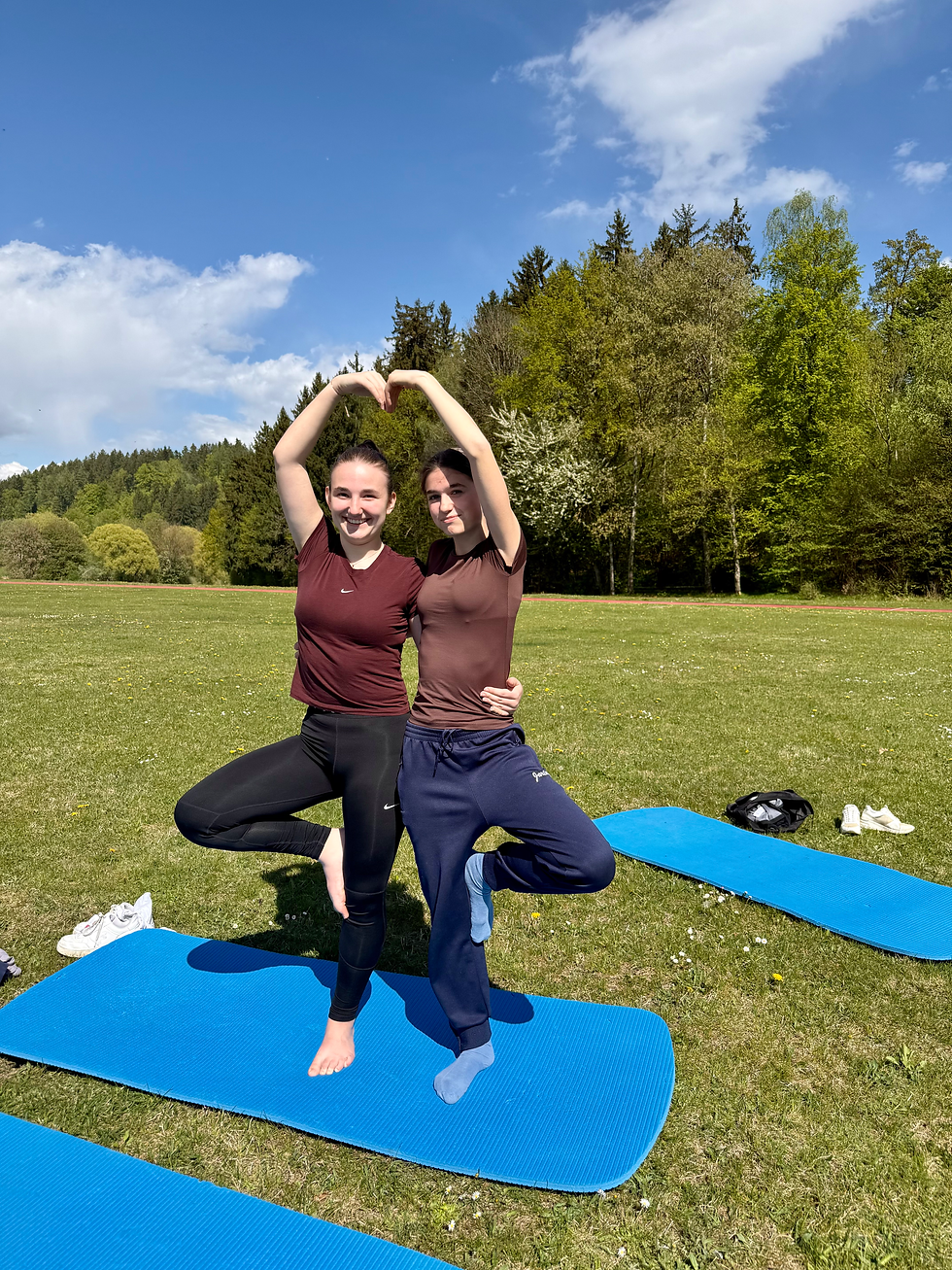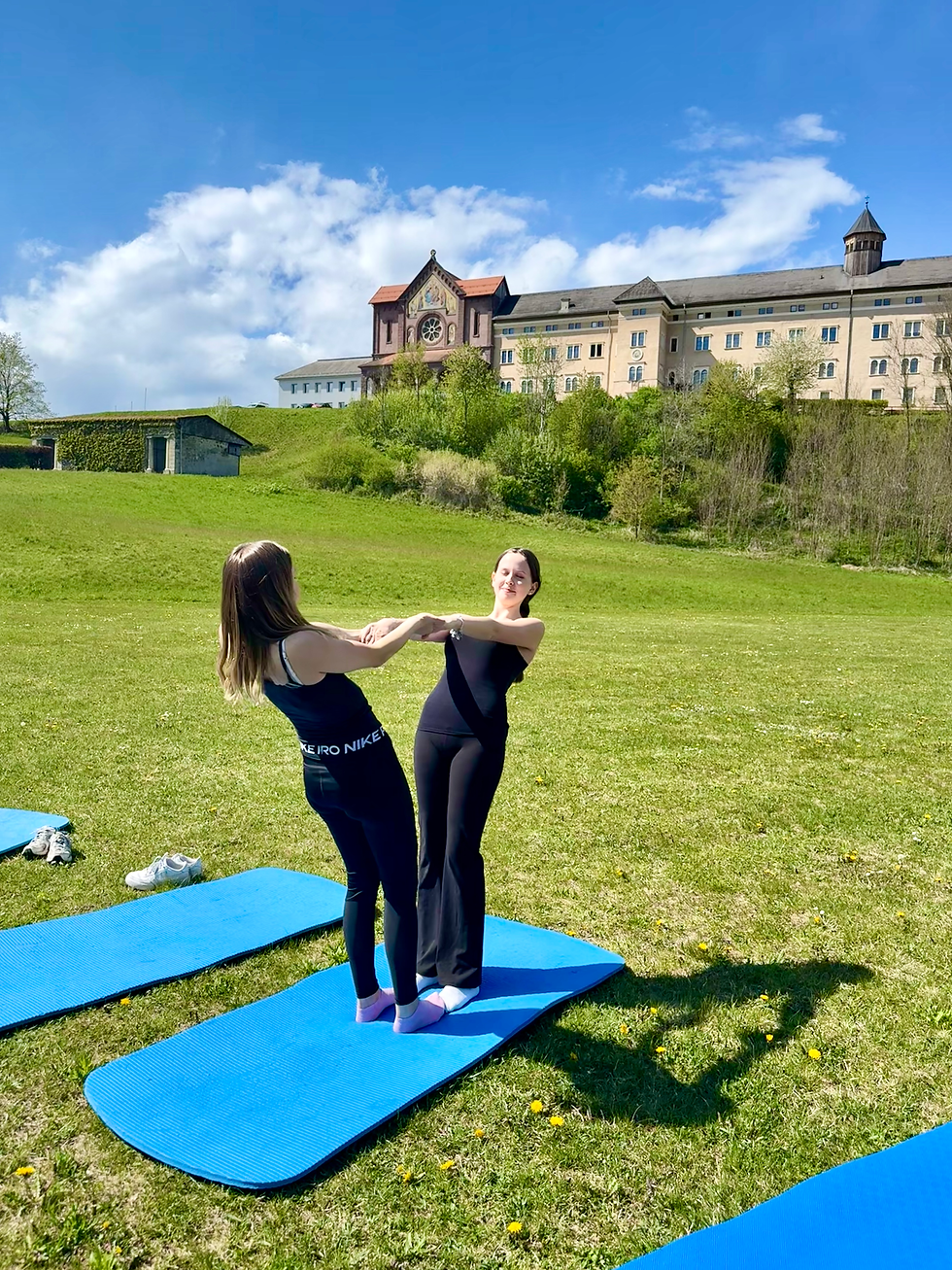 Im Freifach Spanisch wurde eine Unterrichtseinheit angeboten, in der Bewegung, Sprache und Natur miteinander verbunden wurden. Die Unterrichtseinheit "Yoga en Español" ermöglichte es den Schüler:innen, spanische Inhalte auf eine andere Weise kennenzulernen und praktisch anzuwenden. Zu Beginn wurden wichtige spanische Begriffe für Körperteile sowie grundlegende Bewegungen aus dem Yoga erarbeitet. Anschließend leitete Carmen Jasmin, eine Yoga-Lehrerin aus Bolivien, eine Yoga-Einheit, die vollständig auf Spanisch erklärt wurde. Durch das gleichzeitige Zuhören und Ausführen der Bewegungen kam die Sprache direkt zum Einsatz und wurde in einem neuen Zusammenhang erlebt. Die Einheit fand im Freien in Tanzenberg statt. Die frische Luft, die grüne Umgebung und das Frühlingswetter sorgten für eine angenehme und ruhige Atmosphäre. Bewegung kann das Sprachenlernen unterstützen, da Inhalte durch praktische Erfahrungen leichter aufgenommen werden. Das Lernen außerhalb des Klassenzimmers stellte für die Schüler:innen eine willkommene Abwechslung dar.